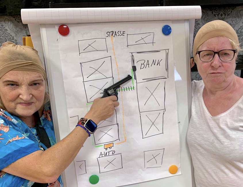 Die zwei Schwestern Elvira und Hedwig, beide in den besten Jahren, träumen von Florida, „dor gifft dat blots noch Sonne, Palmen, Strand …“ - „Un rieke Mannslüüd!“. Also was tun, um sich den Traum zu erfüllen? „Een Bank överfallen, und denn wartt all vun uns blots noch as Bonnie un Clyde snacken!“ Aber das erweist sich als nicht so einfach wie im Film, vor allem, wenn Hedwig, „ick bün de Froo un du de Kerl“, alles wortgetreu ausführt, was Bonnie alias Elvira ihr aufträgt.